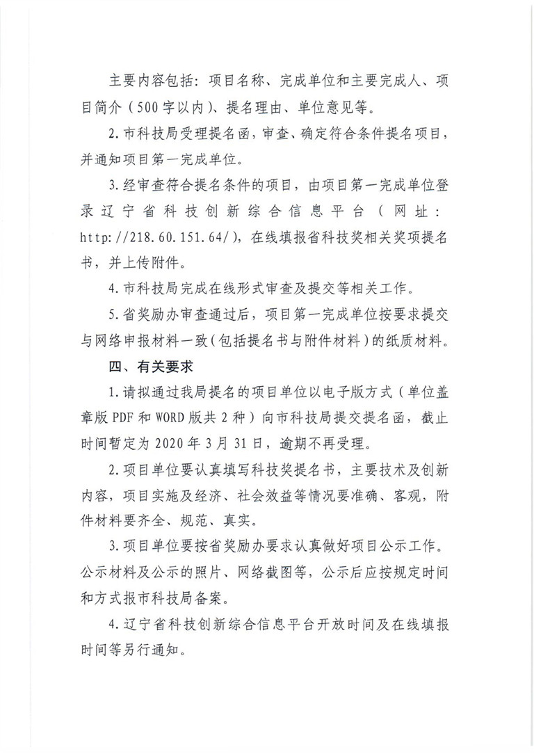 市科技局关于开展2020年度辽宁省科技奖提名工作的通知