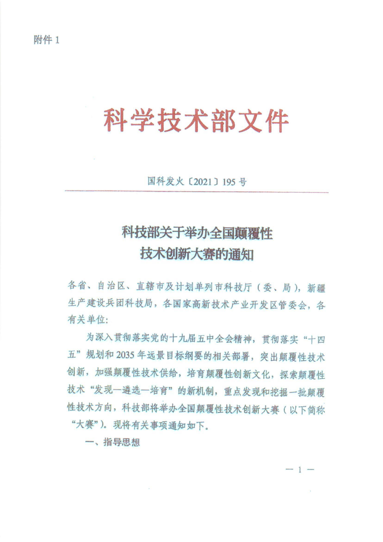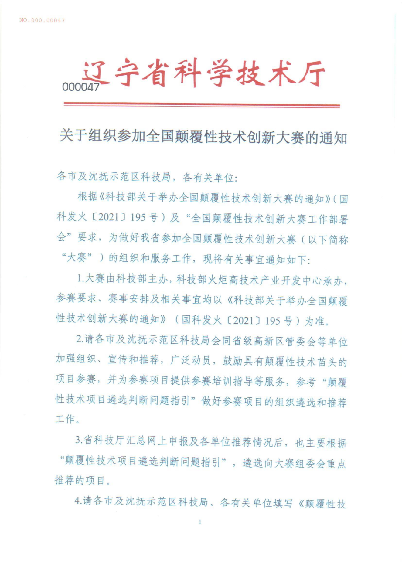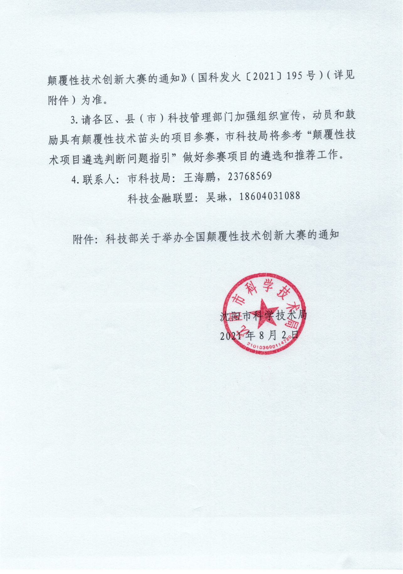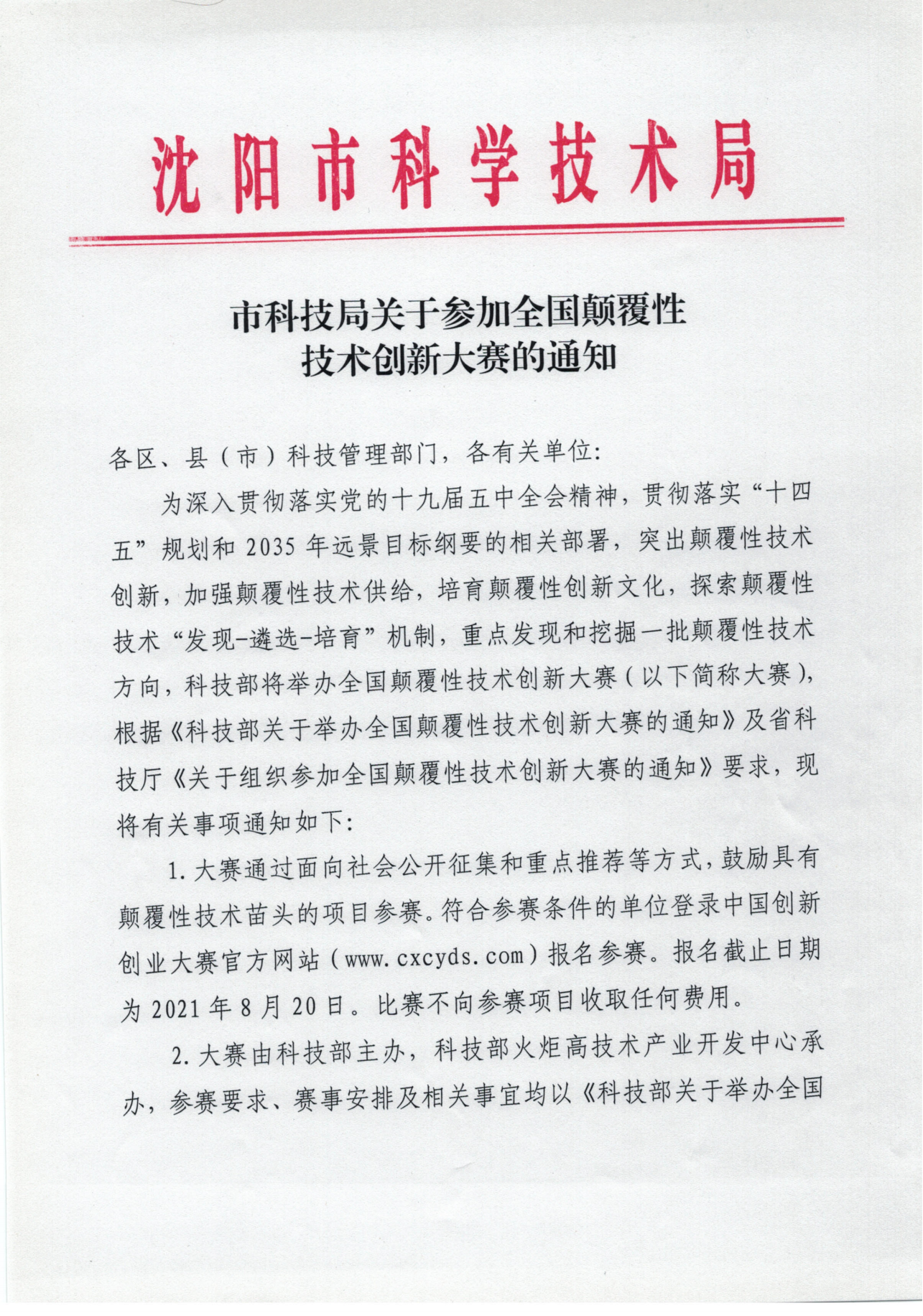 市科技局关于参加全国颠覆性技术创新大赛的通知
