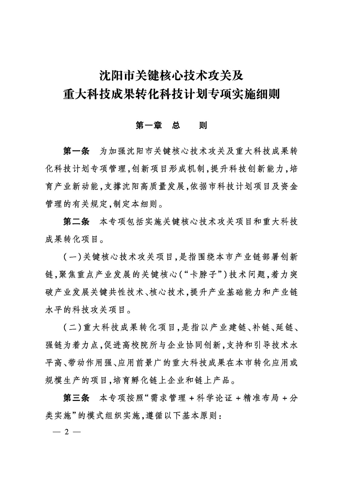 文件链接:《沈阳市关键核心技术攻关及重大科技成果转化科技计划专项实施细则》政策解读