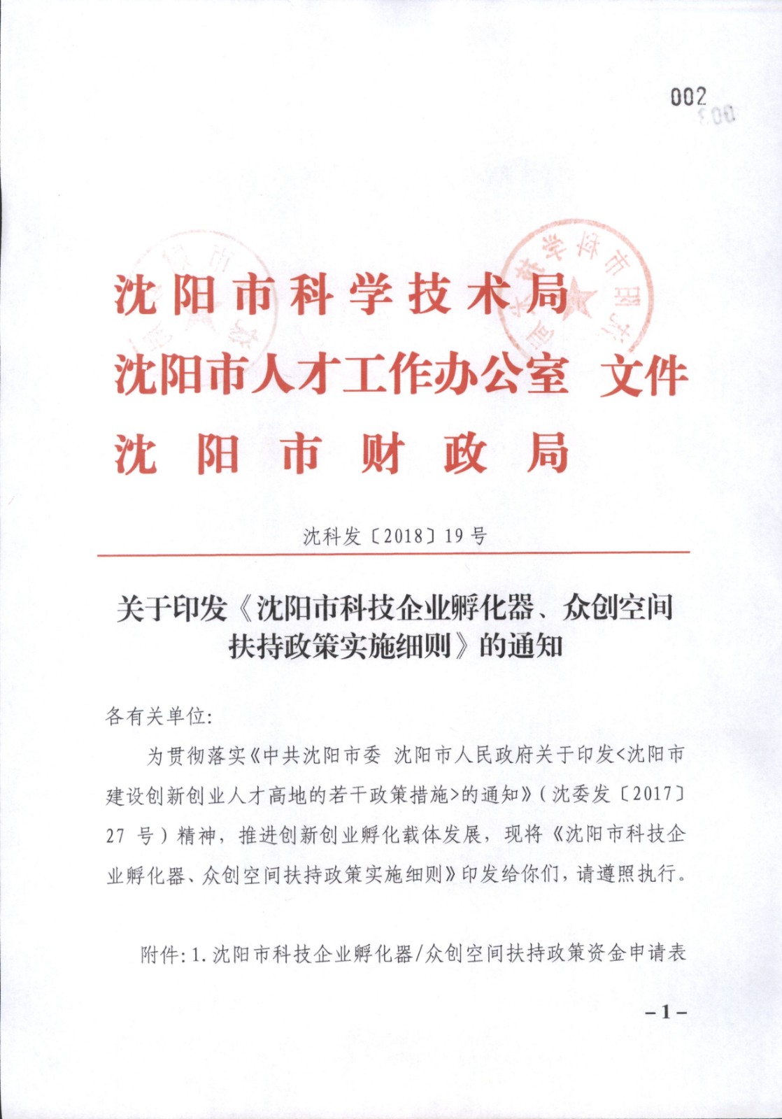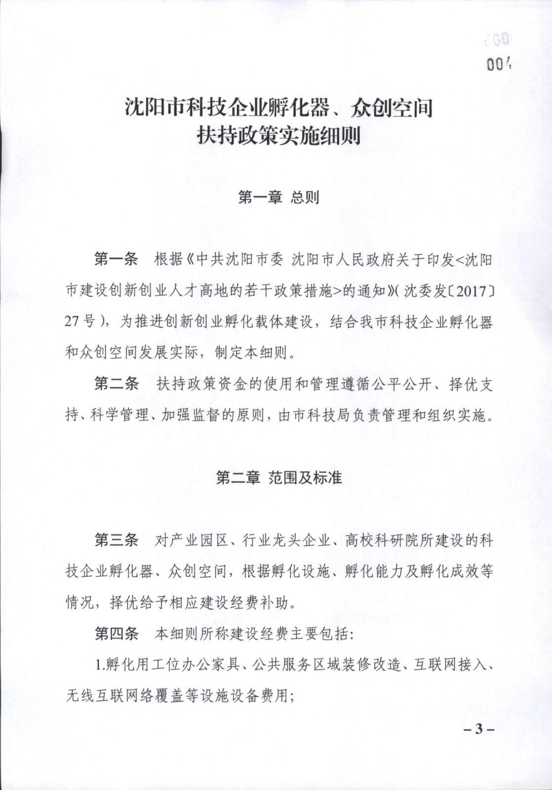 关于印发《沈阳市科技企业孵化器、众创空间扶持政策实施细则》的通知
