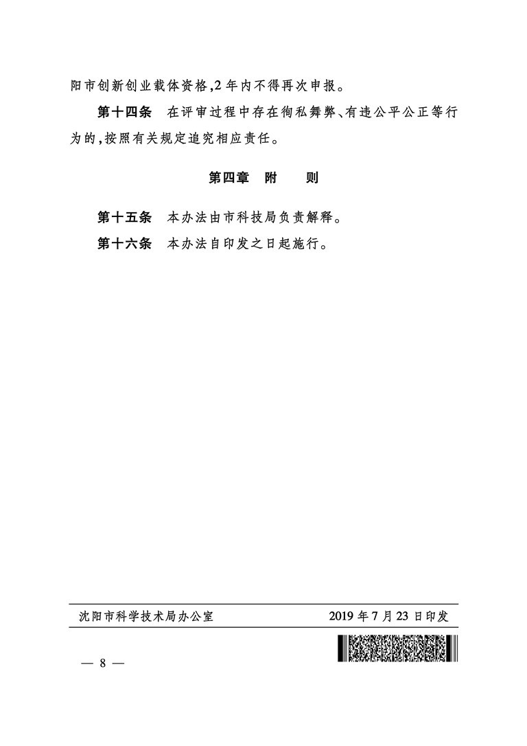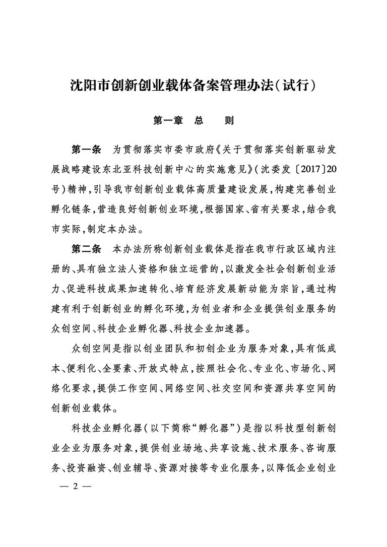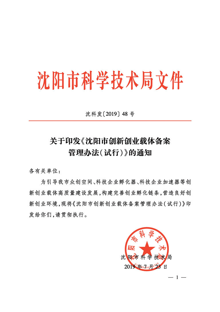 关于印发《沈阳市创新创业载体备案管理办法(试行)》的通知