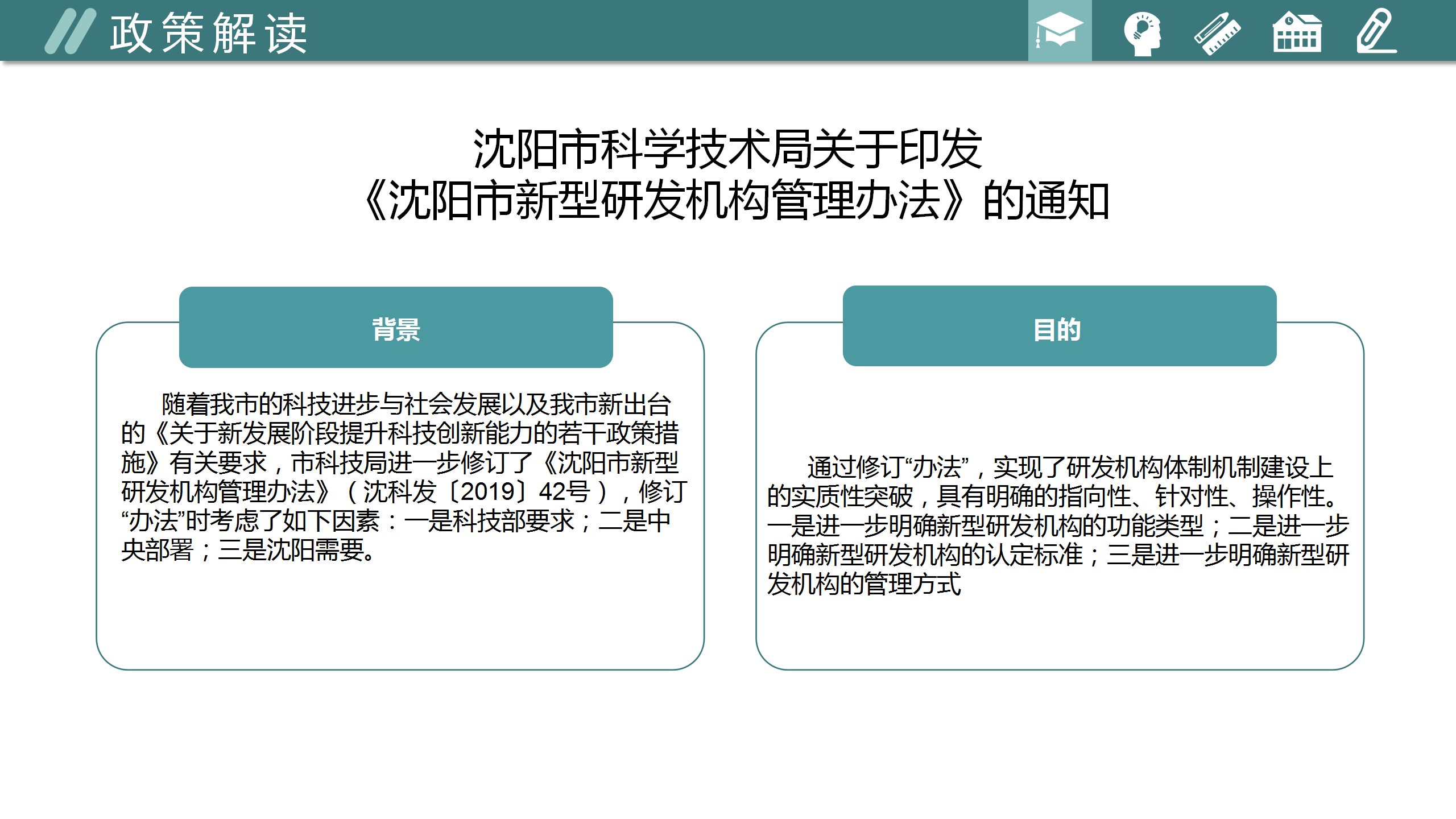 图解:关于《沈阳市科学技术局关于印发沈阳市新型研发机构管理办法的通知》的解读